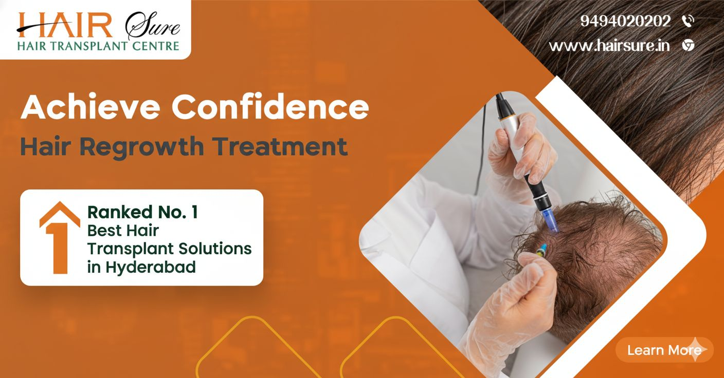 Hair Sure hair transplant clinic is offering the best hair regrowth treatment for men and women who are suffering from hair loss. Hair transplant clinic in Hyderabad, Hair Sure provides hair loss solutions catering to every need to maintain, improve, and optimize hair growth with both non-surgical treatments for male and female hair loss and surgical options include FUE hair transplants to restore the hairline.