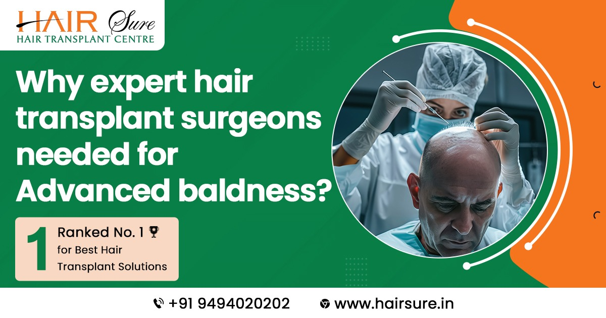 Why are expert hair transplant surgeons needed for advanced baldness?